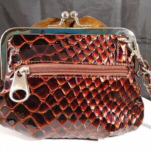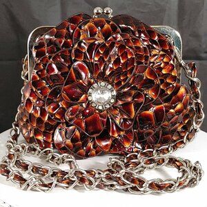Faux Leather Faux Croc Rhinestone Crossbody Purse or Clutch with Chain Strap