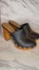 Faux Leather High-Heeled Clogs - Black with Wooden Platform - Size 7.5