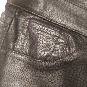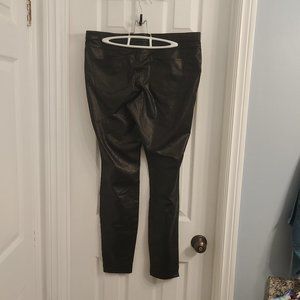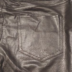 Black faux leather leggings with two back pockets and a tiny watch pocket in front.