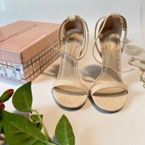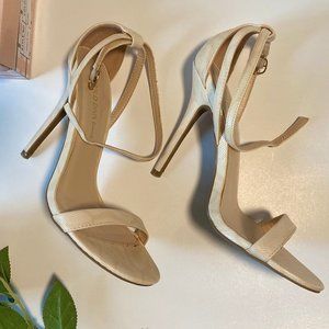 Faux Leather Nude Snake Skin Print Strappy Heels