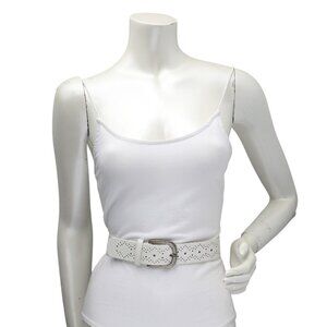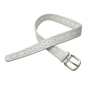 Faux Leather Perforated Die Cut Belt White Silver Retro Y2K