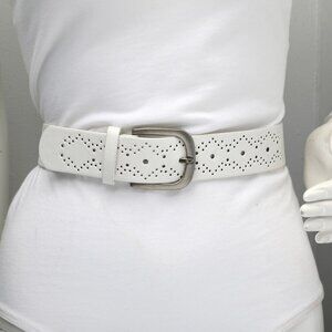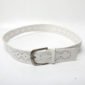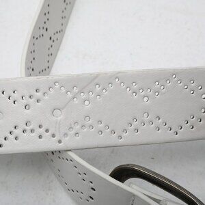 Faux Leather Perforated Die Cut Belt White Silver Buckle Retro Y2K