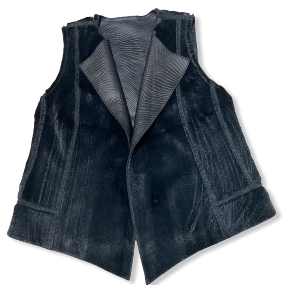 NWOT ultra cool reversible vest. Leather side has geometric chevron pattern. Other side is faux black shearling.