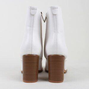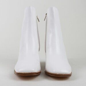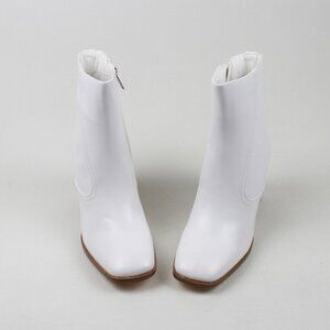 Gorgeous ankle boot in an elegant white hue. Made with vegan leather on the upper, synthetic balance, anti-slip rubber outsole for traction, and block heel for stability. The square toe accommodates both narrow and wide feet for a cozy fit. New without box. Excellent condition.