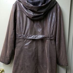 Faux Leather Womens Hooded Jacket With Tie Belt- Size Large
