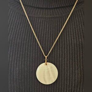 Faux Mother of Pearl Disc / Full Moon Pendant on Bronze Chain.