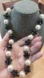 Beautiful sparkle from the faceted black glass beads. So pretty against the faux pearl. 18"