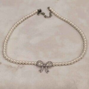 Faux Pearl Bow Choker Necklace