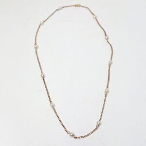 Faux Pearl & Gold Tone Chain Delicate Necklace Classic Old Money Pearls