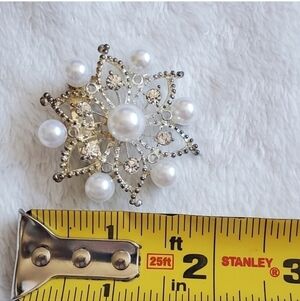 Faux Pearl Rhinestone Brooch Pin