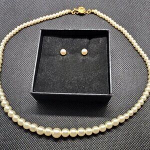 Faux Pearl Strand Necklace and Pearl Stud Earrings