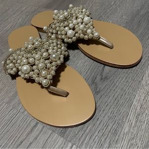 Faux Pearls Women’s Flipflop Sandals Size 7.5