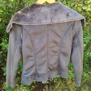 Faux shearling jacket. Very soft lining. New without tags. Reads 8, but fits like an xs. F&F. Pockets still stitched closed. Poly and acrylic. 17" across underarms. 21" long.