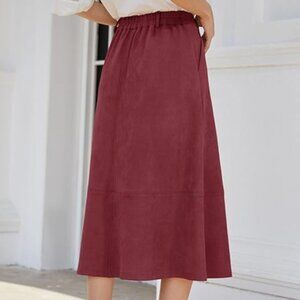 Faux Suede High Waisted Pleated A-Line Midi Skirt with Pockets