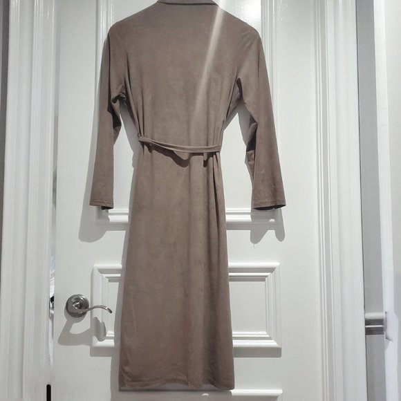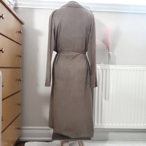 #suede #Robe #tiewaist #tie #rope #robecardigan #tiecardigan #Cardigan #taupe #beige #lightbrown #waterfall #longline #long #longcardigan #suedecardigan #outdoor #indoor #multifunctional #wrap #wrapcardigans #wrap-up