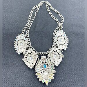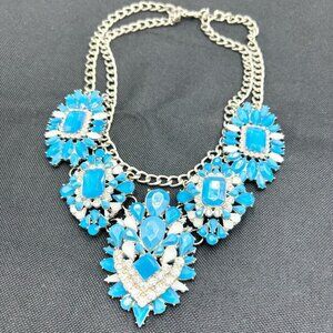 Faux Turquoise Flower Shaped Rhinestone Statement Necklace