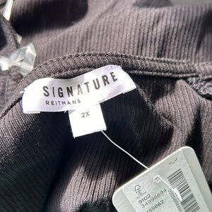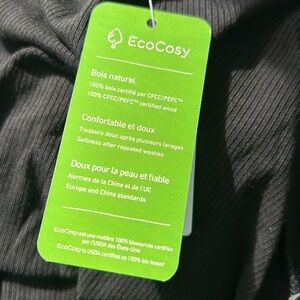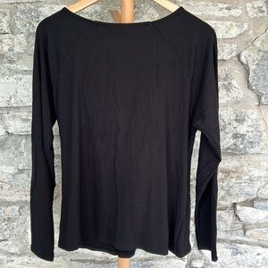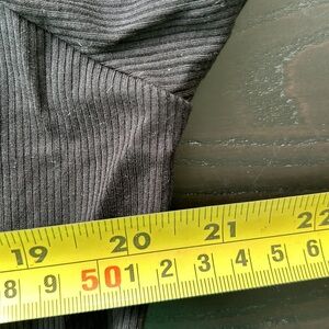 This elegant black faux wrap top is perfect for any occasion. Its sleek design offers a flattering fit, making it a versatile addition to your wardrobe. Ribbed material with stretch and eco friendly.