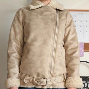 Faux fur beige/cream moto jacket from Stradivarius