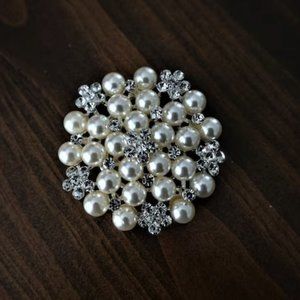 Faux fur bridal wrap and brooch