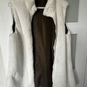 White faux fur vest with zipper no size tag but fits med-large longer style