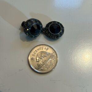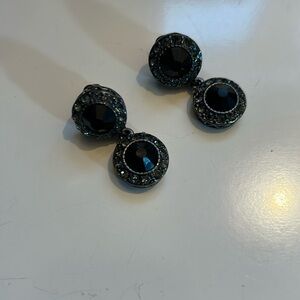 Faux jet rhinestone and gunmetal metal earrings. Has rhinearones around each rhinestone and an engraved design on the encasement. 1” length. Very good condition