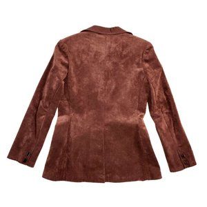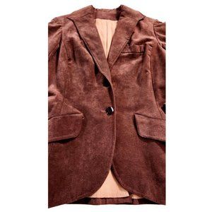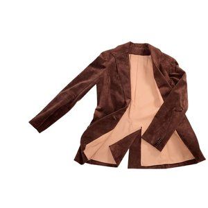 Mauve, faux suede tailored blazer. 2 button centre front closure with front pockets