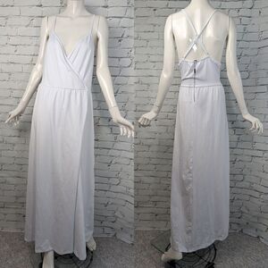 Faux wrap maxi dress, white jersey long dress size XL NWT