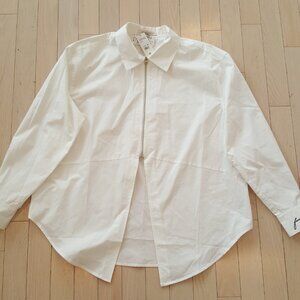 Inspired by our bestseller, The Door's Always Open Ex-Boyfriend Shirt, this oversized button up has a relaxed fit, pointed collar and open hem. It's cut in 100% cotton and is finished with our favorite detail--a front metal zipper.