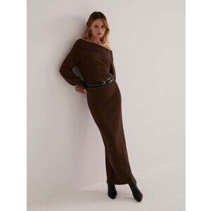 Favorite Daughter The Irene Dress / Medium / Coffee Brown Off-Shoulder Long