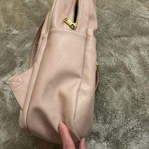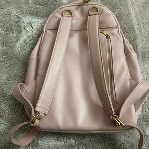 Stylish Fawn Design backpack. Soft pink color. 2 Front zip pockets, inside zipper pocket. Sleek and functional. Holds a laptop-hardware all works. There a couple marks here and there from use but overall great condition!!