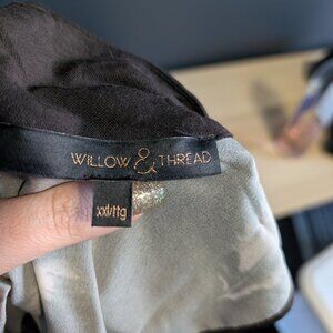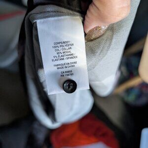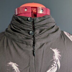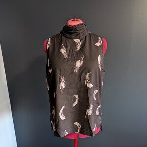 Feather print, high neck, sleeveless top. Back zip, soft stretchy fabric at neck with two button closure. Very lightly worn.