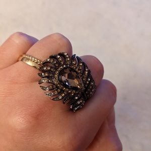 Sparkling brown/bronze custom jewelry feather ring. With stretch. **More photos/measurements upon request**