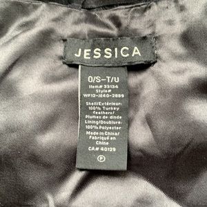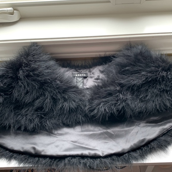 Adjustable one size fits all feather shrug.