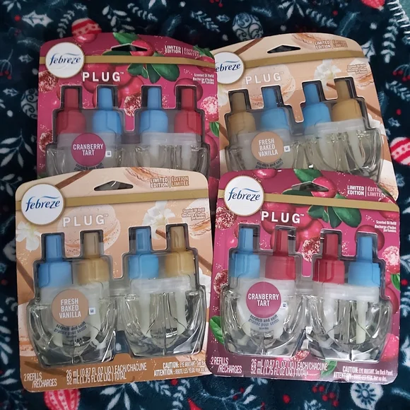4 limited edition febreze plug brand new in box in fresh baked vanilla and cranberry tart.