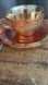 This beautiful vintage teacup and saucer set is from the Federal Glass Company in the sought-after Normandie “Bouquet & Lattice” pattern. Made in the late 1930s–40s, the pieces glow with a warm marigold carnival finish that shimmers in the light. The intricate pressed glass floral and lattice design makes this set a standout collectible. Perfect for display, entertaining, or adding to a depression-era glass collection. Excellent vintage condition with minimal signs of wear.