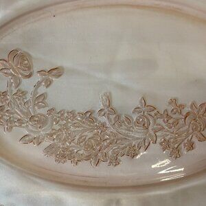 Federal Glass Pink Sharon Cabbage Rose Oval Platter Depression Glass 1930s Decor