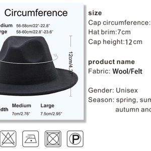 Fedora Hat Unisex Wool Felt Vintage Wide Brim Panama Party Cowboy Cap Jazz