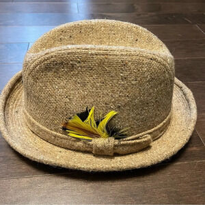 Fedora Hat Vintage 1970s Wool Blend Tweed with Feather by Lanning Men’s Large.