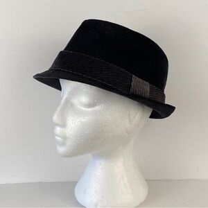 Fedora wool blend hat hatband corduroy wool s/m menswear men Black gray grey