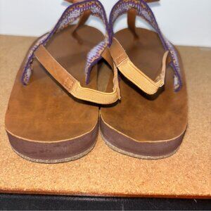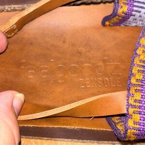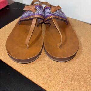 Feelgoodz Tan Vegan Leather Sandals Women's 9 Shimmery Purple Strap Back Strap