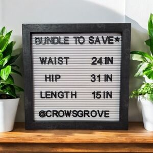 Dimensions: XS size, waist 24 inches, hip 31 inches, length 15 inches