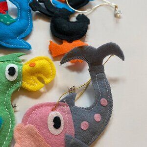 Super cute lot of felt animals, with pinbacks and hang strings, so they can use used as brooches or cute tree ornaments! Made in Japan.