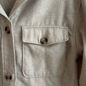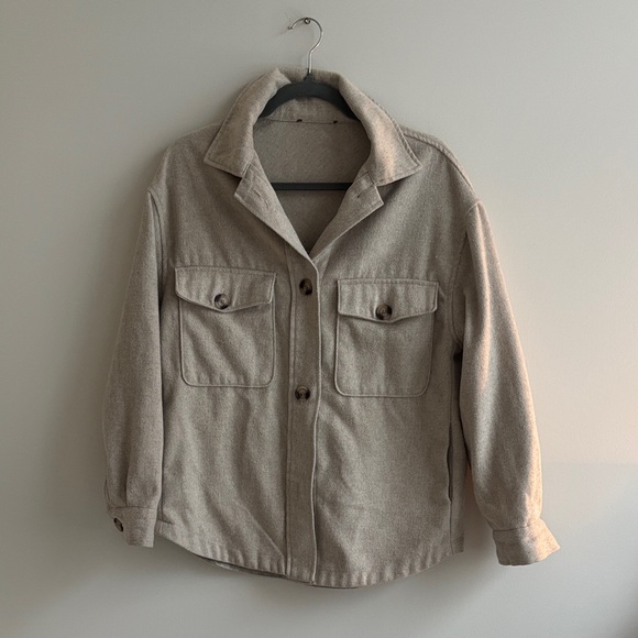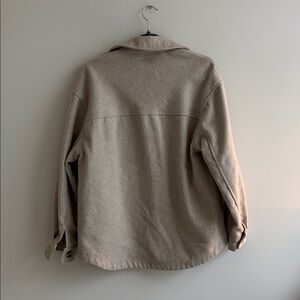 No tags for sizing or material. Best guess is it’s a wool felt jacket in a size Large.