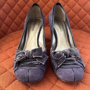 Good condition Lavender Suede Velvet Bow Round Toe Vintage Cuban Heel Arturo Chiang Size 6.5. 2.5 inch heel.
