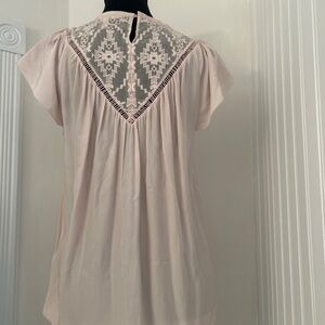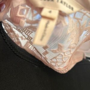 Rebecca Taylor silk full flowy top with sheer embroidered insert and flutter sleeve. Size 4 will fit medium and small. Ptp 22”