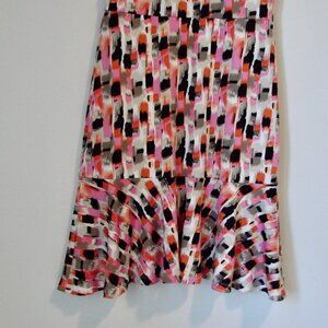 Femme Multicolour Midi Dress Short Sleeve Ruffle Hem Office Work Size Small