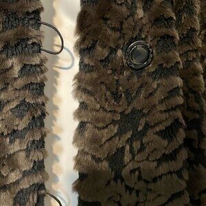 Chic, Fun and Comfortable - Fen-Nelli Ladies Black & Brown Faux-Fur Pile Button-Up Coat