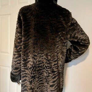 Fen-Nelli Elegant Black & Brown Faux Fur Coat