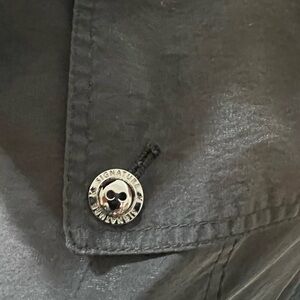 Nice little raincoat. Beautiful detail with inside zipper and fully lined. Straps at wrist. Strap from neck/collar missing. Doesn’t impact the look.