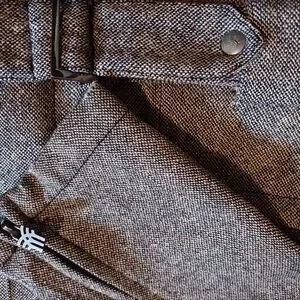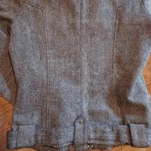 Size S Fenchurch wool jacket..Unique design with epaulettes, zip-open sleeve and snap belt. Beautiful sparkle thread wool fabric. Fully lined. Super high quality jacket. Label is long since faded but it's dry clean only.